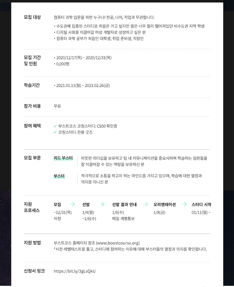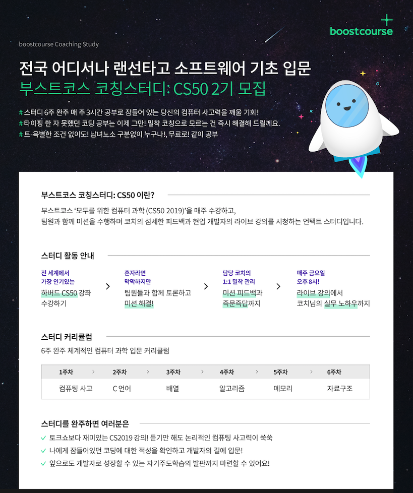 그러던 중 알게된 부스트코스 CS50 코칭스터디 모집 !!