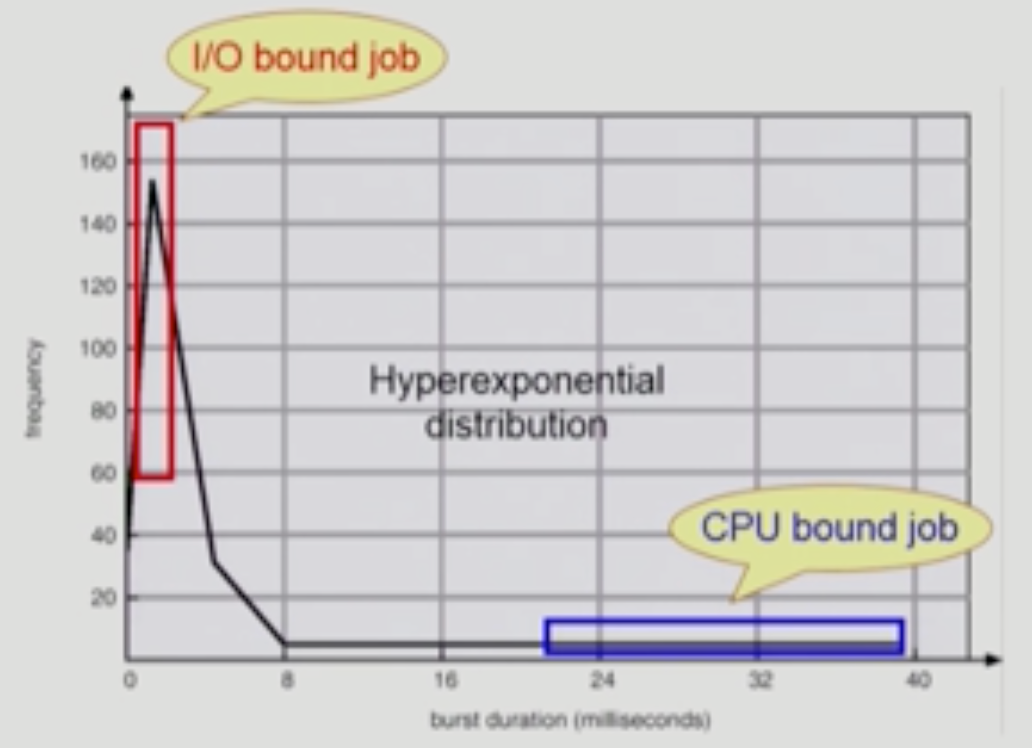 - 중간에 I/O가 많으면 CPU bust time이 적음. (= I/O bound job) -> 반대가 CPU bound job