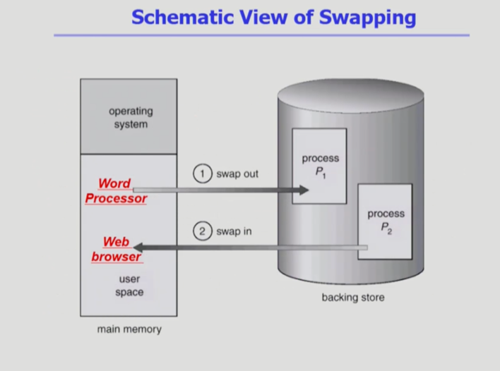 - 프로세스를 일시적으로 메모리에서 backing store로 쫒아내는 것