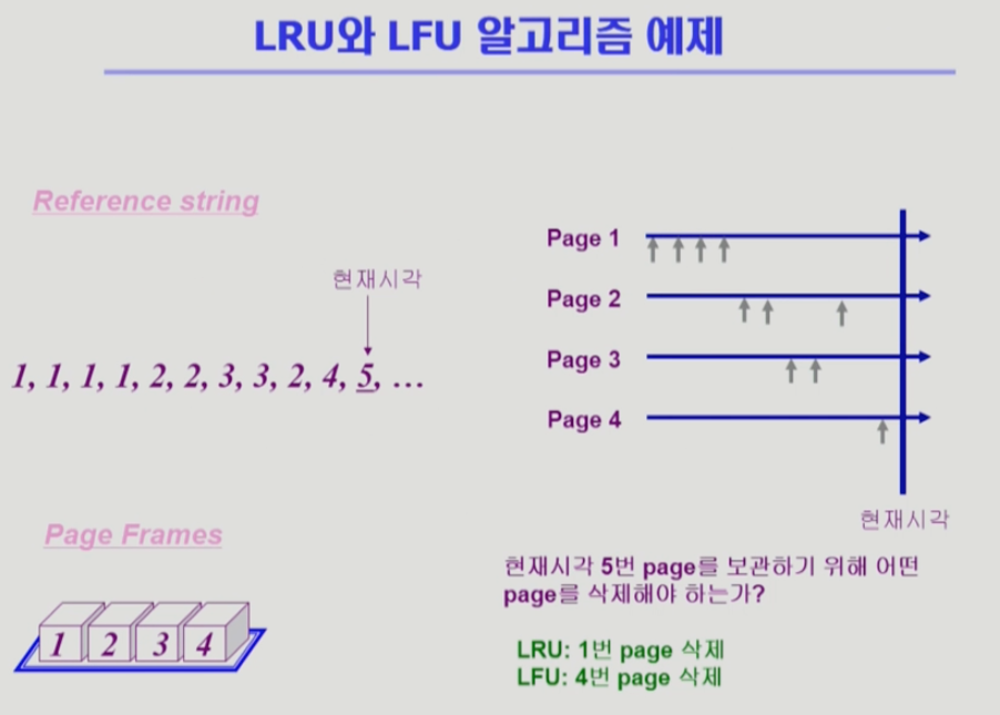 - LFU 알고리즘 자체에서는 여러 page 중 임의로 선정한다.