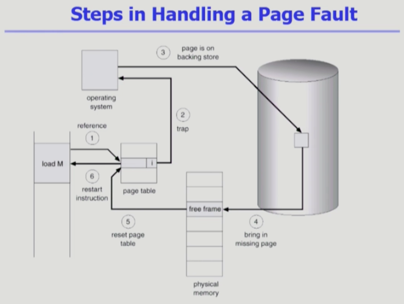 - OS는 백킹스토어에 있는 페이지를 물리메모리로 올린다.