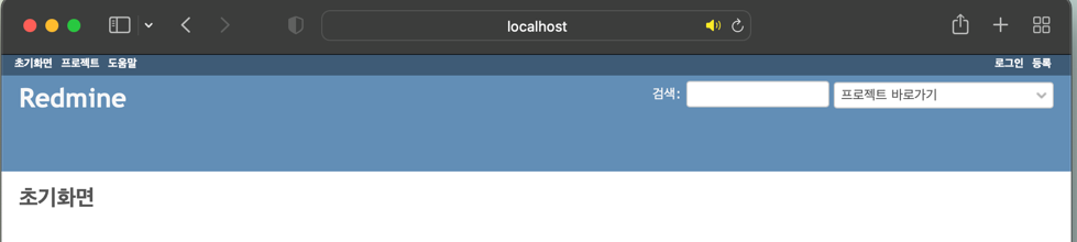 - redmine 초기 화면 접속 및 테스트 (http://localhost:8086)