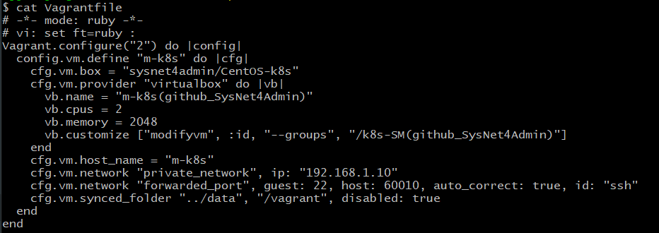 default: URL: https://vagrantcloud.com/sysnet4admin/CentOS-k8s