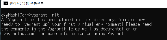 - CMD를 실행하고 베이그런트 설치 디렉터리로 이동하어 베이그런트 초기화를 진행한다.
