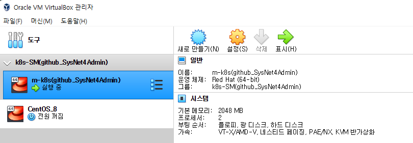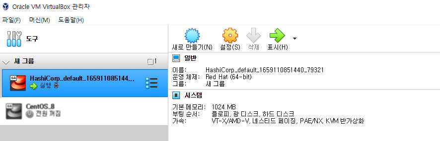 - Virtualbox 실행해 VM 생성이 잘 되었는지 확인
