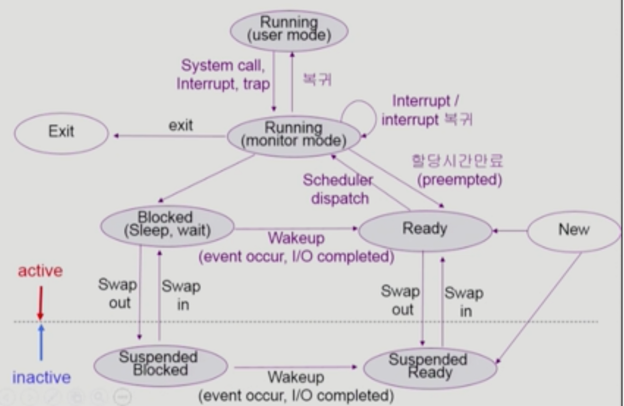 - Process State (생성, 준비, 실행, 대기, 종료의 프로세스의 상태)